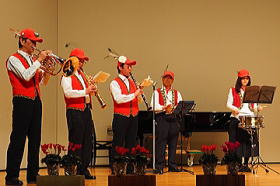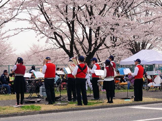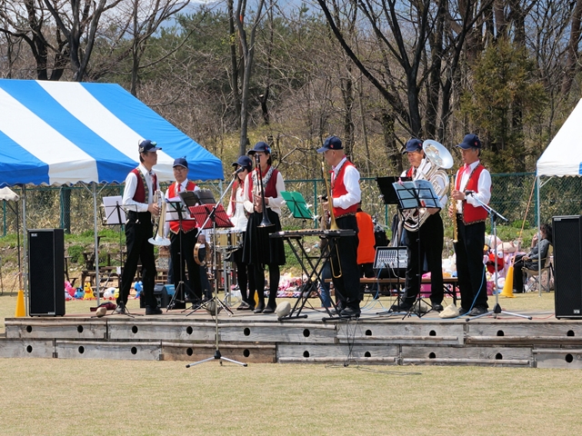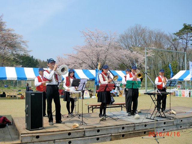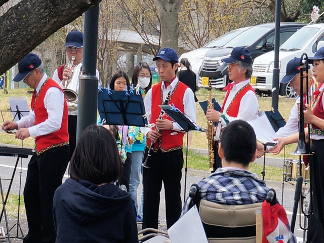 | 大田原市の介護施設に招かれ、満開の桜の下で演奏しました。 | |
