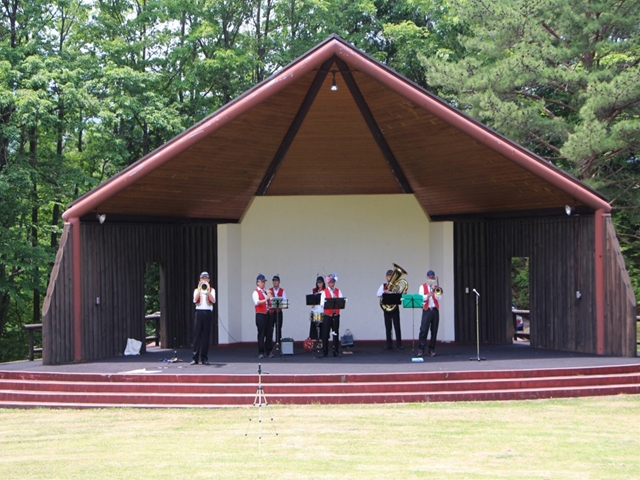 野外ステージの正面は絶好のロケーション。 チロルの曲を演奏する那須ハングリーアンサンブルに とっても最適の場所でした。 |
